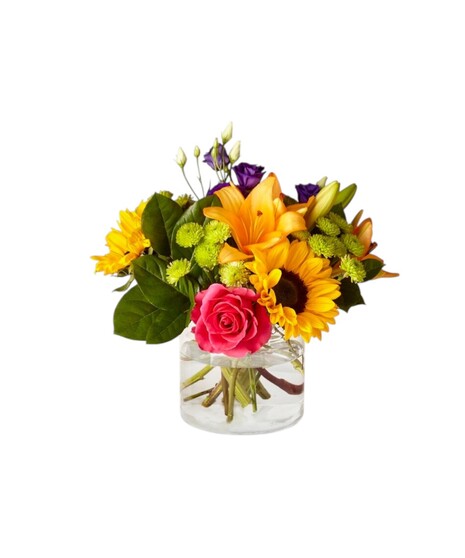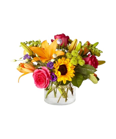 The Best Day Bouquet is ready to create a moment your recipient will always remember! An instant mood booster with it's mix of bright bold colors, this gorgeous fresh flower arrangement brings together sunflowers, roses, lisianthus, lilies, snapdragons, green button poms, and lush greens to make this day, their best day.