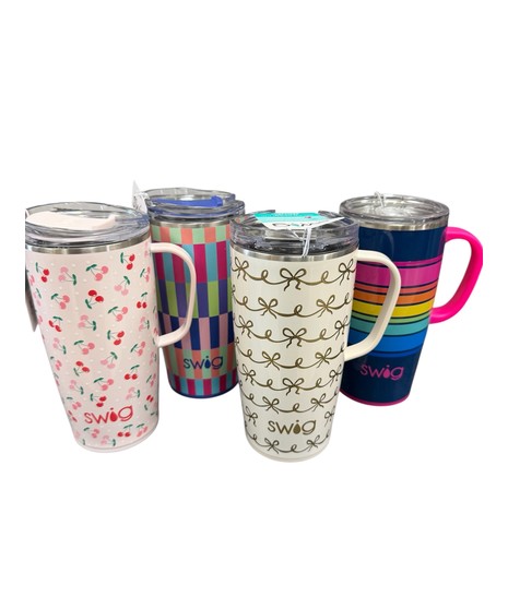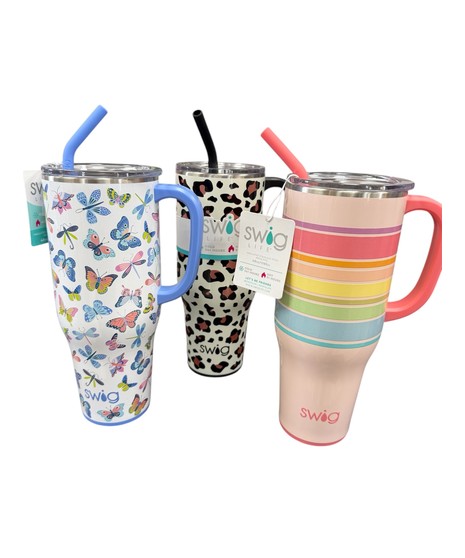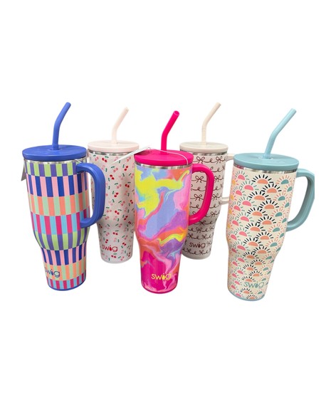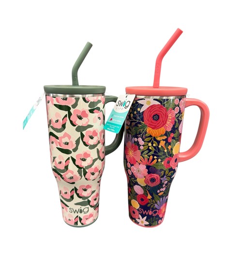 The gift that keeps on giving! A fun pick-me-up arrangement of flowers in a cute 22 oz. or 40 oz. Swig mug. Pattern of mug and flowers may vary. Mug is dishwasher safe and keeps drinks cold 24+ hours and hot 3+ hours.
