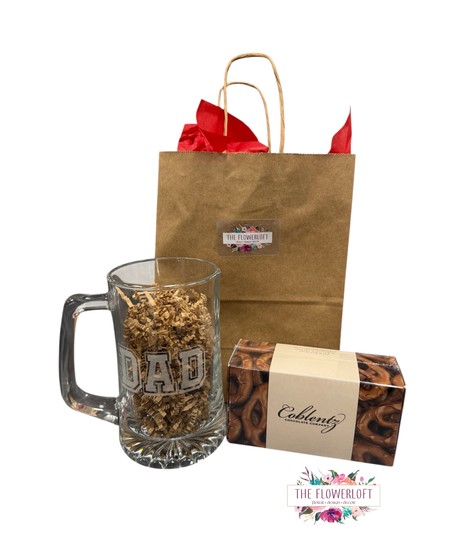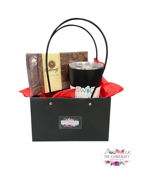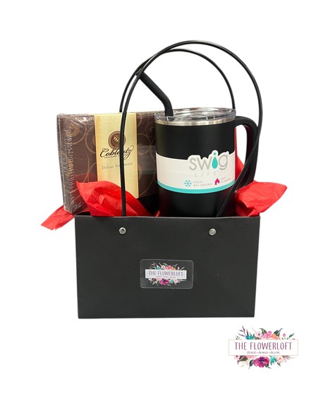 You pick 2! This gift is sure to please with all of these possible combinations of your FlowerLoft favorites! Water bottle and Swig mug colors and chocolates may vary. Beer mug and water bottle are available to be personalized with a name.